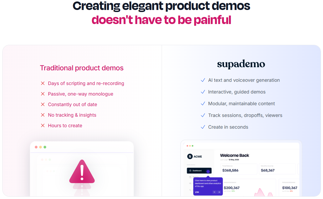 Supademo lets community builders, product teams, and marketers create interactive, AI-enhanced product demos that accelerate sales, scale onboarding, and improve customer success.